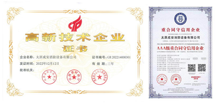 太原成安消防設(shè)備有限公司是一家集設(shè)計、銷售、安裝及售后服務(wù)于一體的現(xiàn)代化高科技企業(yè)。產(chǎn)品按消防產(chǎn)品合格評定中心及固定滅火系統(tǒng)和構(gòu)件質(zhì)量監(jiān)督中心CCCF強制認證測試合格,產(chǎn)品取得了消防設(shè)備的檢驗報告和3C證書(七氟丙烷滅火設(shè)備QMQ4.2/70N-QY1、QMQ4.2/100N-QY1、QMQ4.2/120N-QY1、QMQ4.2/150N-QY1;柜式七氟丙烷氣體滅火裝置GQQ70/2.5-QY1、GQQ100/2.5-QY1、GQQ120/-QY1、GQQ150/2.5-QY1;懸掛式七氟丙烷氣體滅火裝置XQQW20/1.6-QY1共4大類品種)。